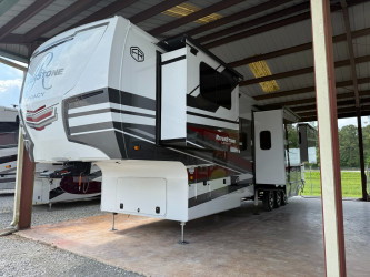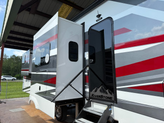 The RV for sale is a New 2025 Riverstone Legacy Fifth Wheel by Forest River RV that and much more.