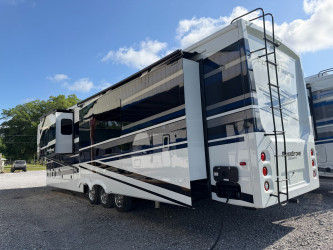 This Riverstone Legacy Fifth Wheel weighs 18895 (dry), is in great condition is 44ft 10in long, has a "43bfc" floorplan, and is available to you at your family RV dealer Holden in Holden, LA.