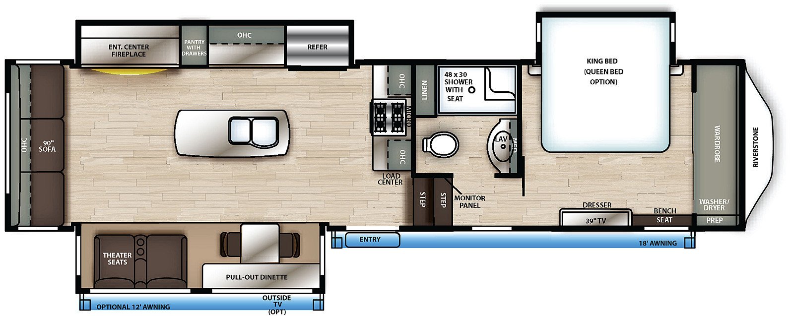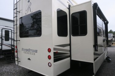 This Riverstone Standard Fifth Wheel is 38ft 3in long, is in great condition has a "3670rl" floorplan, weighs 13925 (dry), and is available to you at your family RV dealer Holden in Holden, LA.