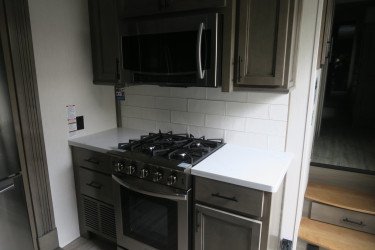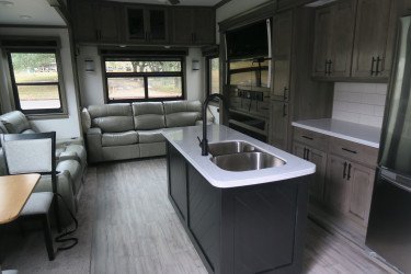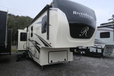 The RV for sale is a New 2021 Riverstone Standard Fifth Wheel by Forest River RV that and has 3 spacious slides.