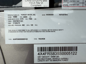 The RV for sale is a New 2025 Riverstone Legacy Fifth Wheel by Forest River RV that and much more.