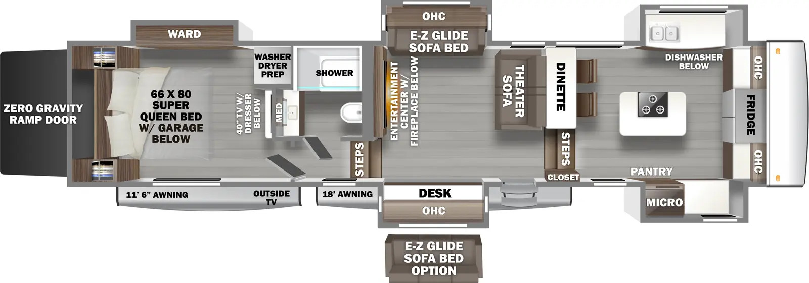 This Riverstone Legacy Fifth Wheel has a "42fskg" floorplan, is in great condition is 44ft 7in long, weighs 18327 (dry), and is available to you at your family RV dealer Holden in Holden, LA.