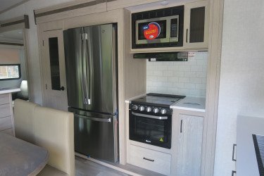 The RV for sale is a New 2022 Rockwood Ultra Lite Fifth Wheel by Forest River RV that and has 4 spacious slides.
