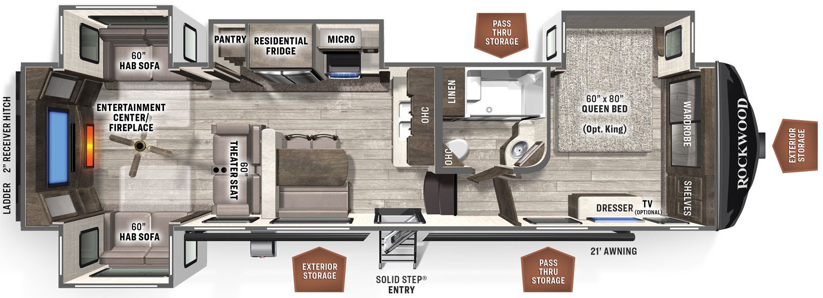 This Rockwood Ultra Lite Fifth Wheel is in great condition is 37ft 0in long, weighs 10320 (dry), has a "2898bs" floorplan, and is available to you at your family RV dealer Holden in Holden, LA.