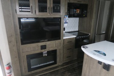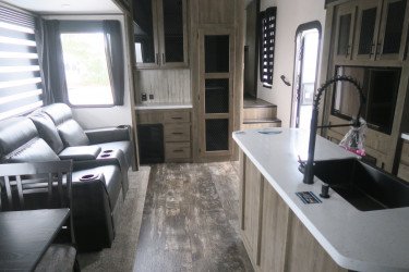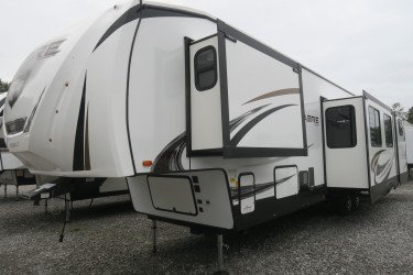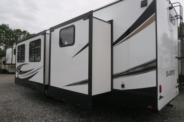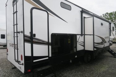 The RV for sale is a New 2021 Sabre Standard Fifth Wheel by Forest River RV that and has a slide.