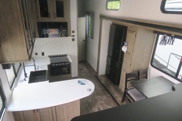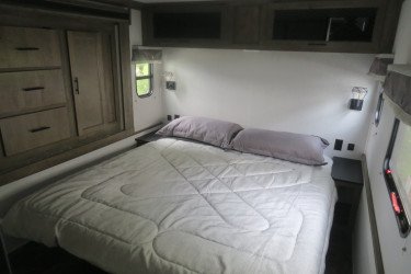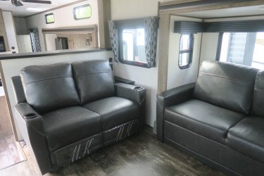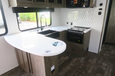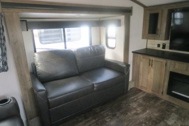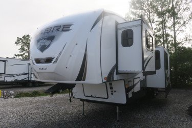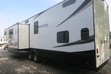 The RV for sale is a New 2022 Sabre Standard Fifth Wheel by Forest River RV that and has a slide.