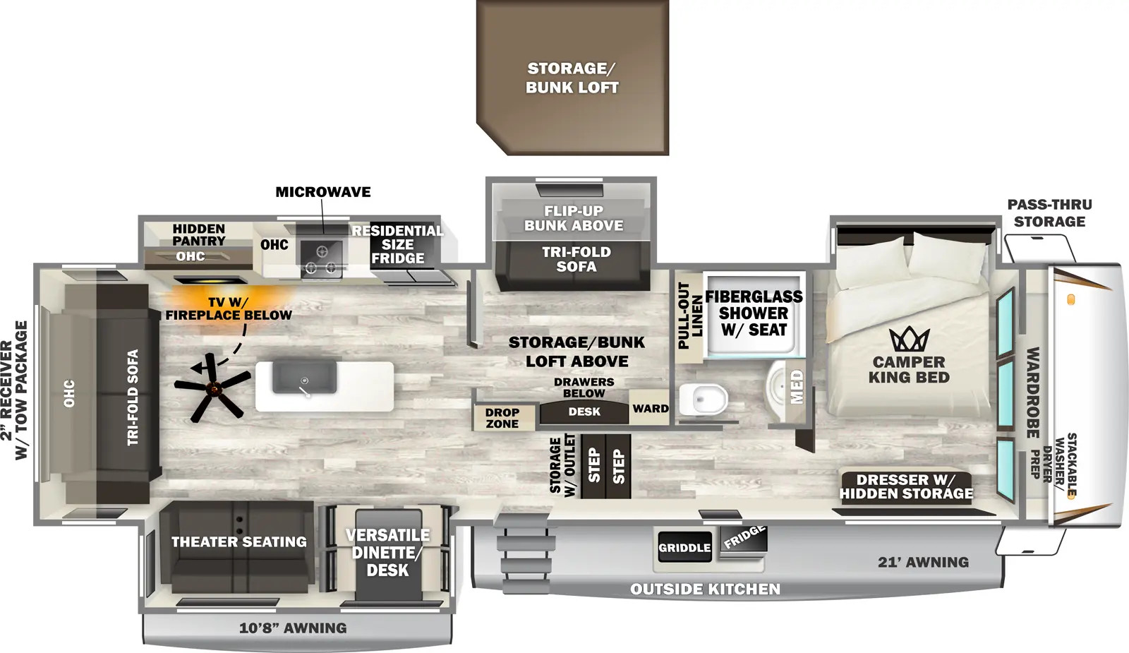 This Sabre 36flx Fifth Wheel has a "36flx" floorplan, is in great condition is 41ft 0in long, weighs 12465 (dry), and is available to you at your family RV dealer Ponchatoula in Ponchatoula, LA.