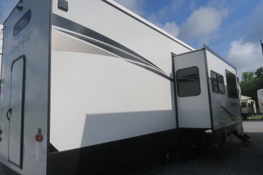 The RV for sale is a New 2023 Sandpiper Fifth Wheel by Forest River RV that and much more.