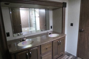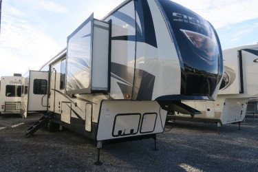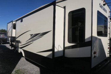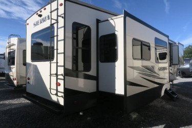 The RV for sale is a New 2019 Sierra Standard Fifth Wheel by Forest River RV that and has 4 spacious slides.