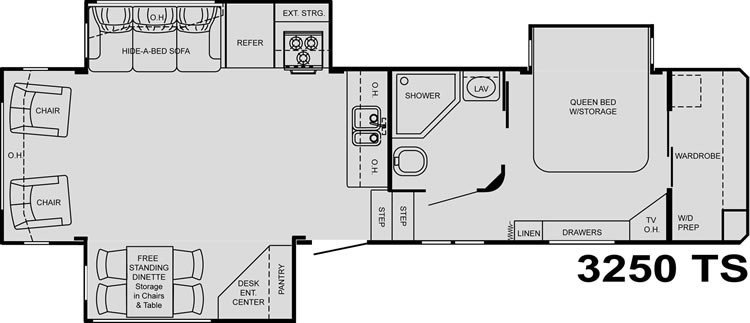 This Heartland Big Country Fifth Wheel is 33ft 0in long, has a "3250ts" floorplan, weighs 10800 (dry), is brand new, and is available to you at your family RV dealer Holden in Holden, LA.