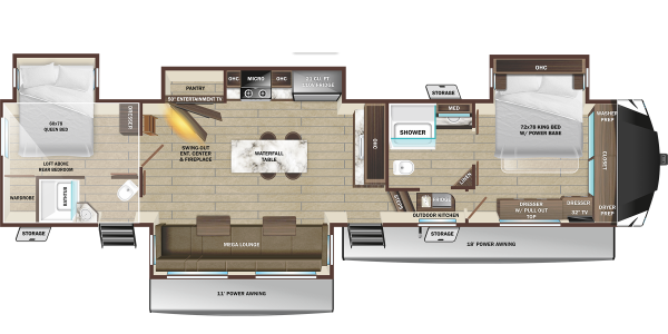 Since the company seeks to be the “RVer’s RV,” Highland Ridge has designed their fifth wheels with maximum space and functionality in mind. With a reputation in the industry worthy of upholding, the Highland is known for using the latest technologies to elevate the RV experience both inside and outside of each unit.