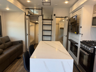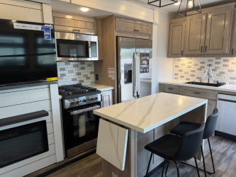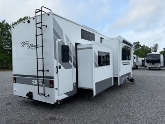 This Open Range 3x Fifth Wheel weighs 15663 (dry), is 44ft 4in long, has a "393tbr" floorplan, is in great condition and is available to you at your family RV dealer Ponchatoula in Ponchatoula, LA.