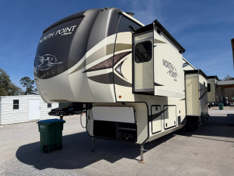 This North Point Luxury Fifth Wheel is 43ft 0in long, has a "387rdfs" floorplan, is in great condition and is available to you at your family RV dealer Ponchatoula in Ponchatoula, LA.
