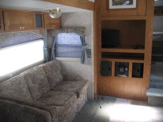 The larger (26- to 40-foot) fifth-wheel models are the hot setup for anyone seeking maximum living space -- the RV of choice for full-time living. Most include up to three large slideouts and standing room in the front bedroom; the larger models are available with a wide range of appliances, including built-in washer/ dryer, dishwasher and entertainment center with surround sound.