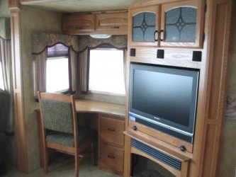 Fifth Wheels are available with a wide range of features and appliances. Some of these are normally found only in higher-end motorhomes, such as a washer/dryer and an on-board generator. Of course all of the standard amenities, and some not so standard such as ceiling fans, are also available.