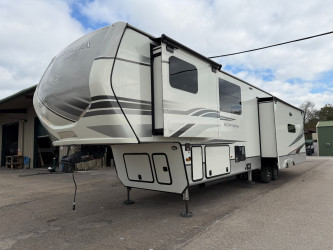 This Montana Legacy Fifth Wheel is in great condition is 41ft 0in long, has a "3781rl" floorplan, and is available to you at your family RV dealer Ponchatoula in Ponchatoula, LA.