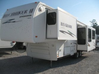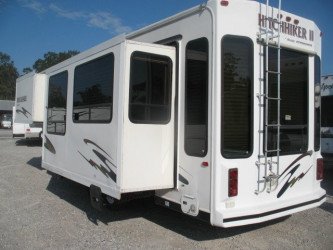 The RV for sale is a Used 3900 Nu-wa Hitchhicker Ii Fifth Wheel by Nu-wa RV that is equipped with a tough fiberglass construction type, is room enough for 6 RV-ers to sleep, and has 2 spacious slides.
