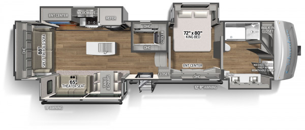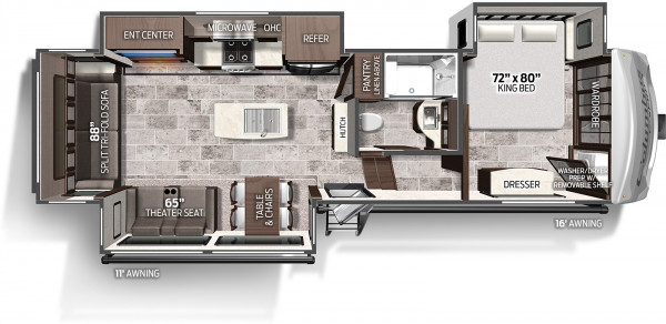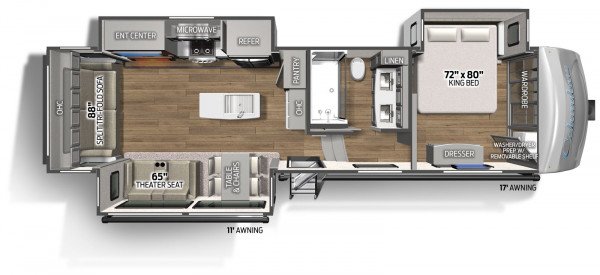 Our Palomino fifth-wheels have a full entertainment center for family movie nights and those rainy days. These campers make your camping experience comfortable and fun for everyone.
