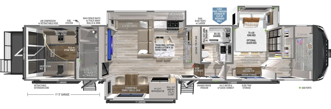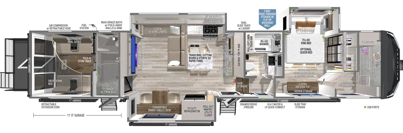 This Brinkley Model G Toy Hauler weighs 19726 (dry), is in great condition has a "4155" floorplan, is 46ft 5in long, and is available to you at your family RV dealer Ponchatoula in Ponchatoula, LA.
