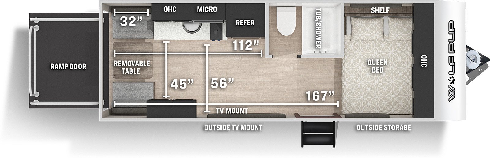 This Cherokee Wolf Pup Toy Hauler weighs 3416 (dry), is 22ft 9in long, is in great condition has a "18rjb" floorplan, and is available to you at your family RV dealer Ponchatoula in Ponchatoula, LA.