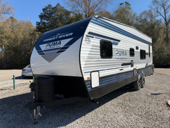 This Puma Unleashed Toy Hauler is in great condition is 29ft 9in long, weighs 6135 (dry), has a "25th" floorplan, and is available to you at your family RV dealer Ponchatoula in Ponchatoula, LA.