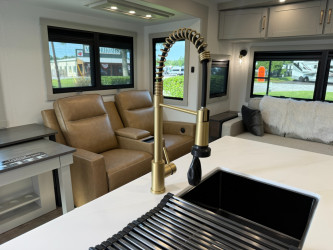 This Brinkley Model Z Travel Trailer weighs 11322 (dry), is 37ft 10in long, has a "310 air" floorplan, is in great condition and is available to you at your family RV dealer Ponchatoula in Ponchatoula, LA.