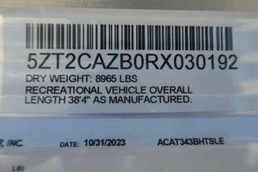 This Catalina Legacy Edition Travel Trailer has a "343bhtsle" floorplan, weighs 8560 (dry), is 38ft 4in long, is in great condition and is available to you at your family RV dealer Holden in Holden, LA.
