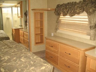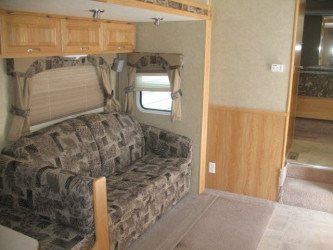 The RV for sale is a Used 3907 Crossroads Rv Cruiser Travel Trailer by Crossroads Rv RV that is equipped with a tough fiberglass construction type, is room enough for 6 RV-ers to sleep, and has 3 spacious slides.