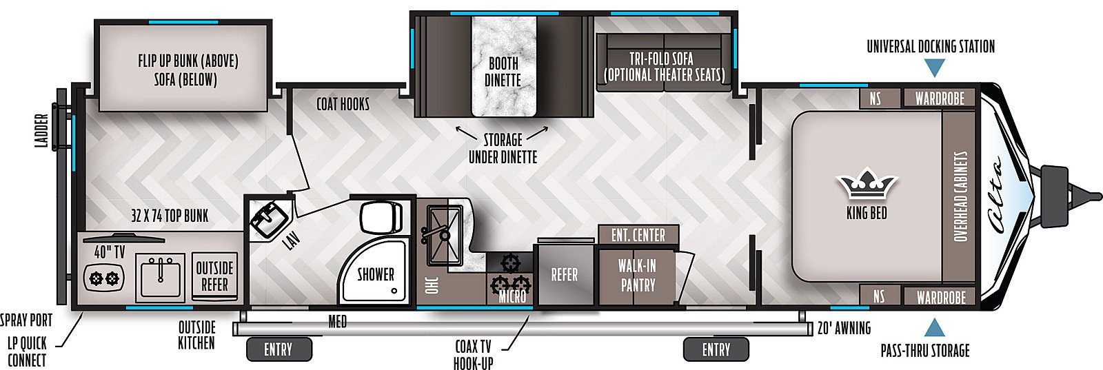 The RV for sale is a New 2021 Alta Standard Travel Trailer by East To West RV that and has 2 spacious slides.