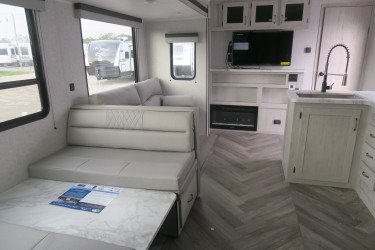 The RV for sale is a New 2022 Della Terra Standard Travel Trailer by East To West RV that and has a slide.