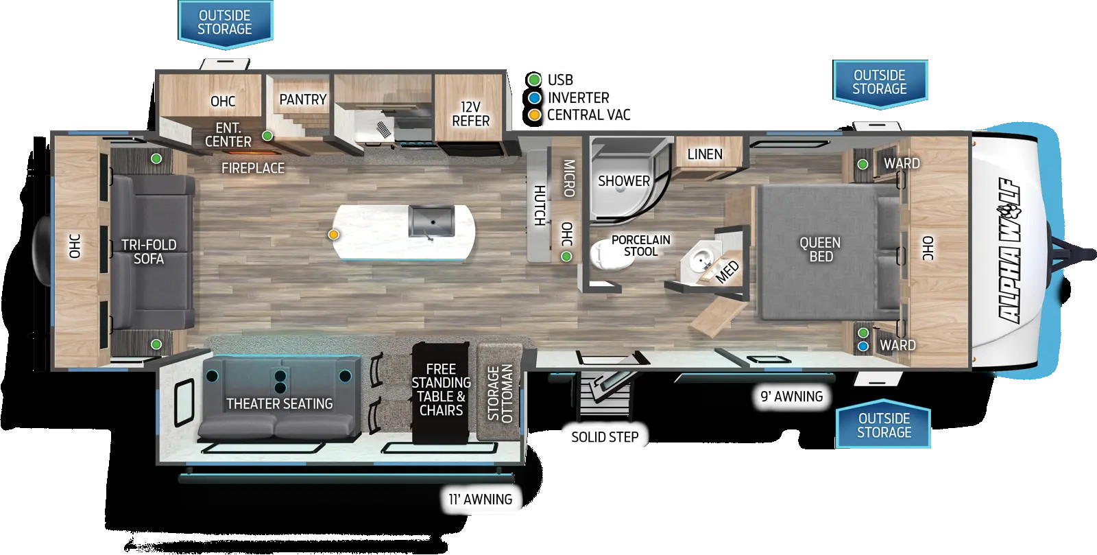 The RV for sale is a New 2024 Cherokee Alpha Wolf Travel Trailer by Forest River RV that and much more.