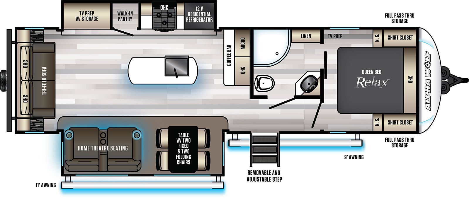 This Cherokee Alpha Wolf Travel Trailer has a "26rl" floorplan, weighs 7050 (dry), is 34ft 5in long, is in great condition and is available to you at your family RV dealer Ponchatoula in Ponchatoula, LA.