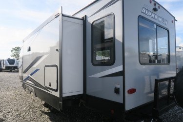 The RV for sale is a New 2021 Cherokee Alpha Wolf Travel Trailer by Forest River RV that and has a slide.