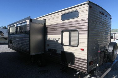 The RV for sale is a Used 2018 Cherokee Grey Wolf Travel Trailer by Forest River RV that and has a slide.