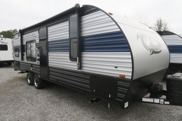 The RV for sale is a New 2022 Cherokee Grey Wolf Travel Trailer by Forest River RV that and has a slide.