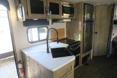 The RV for sale is a New 2022 Cherokee Alpha Wolf Travel Trailer by Forest River RV that and has a slide.