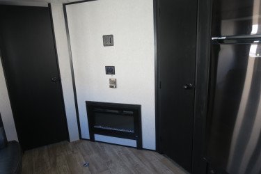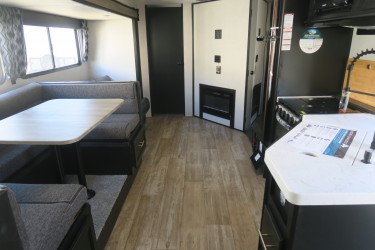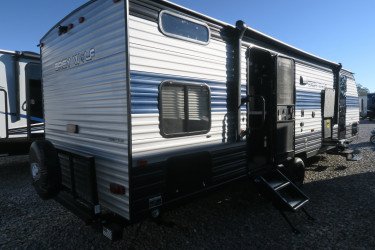 The RV for sale is a New 2021 Cherokee Grey Wolf Travel Trailer by Forest River RV that and has a slide.