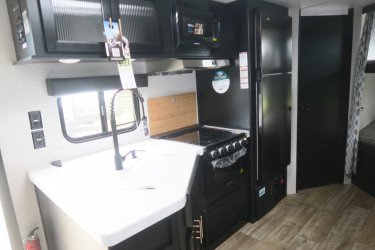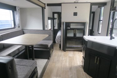 The RV for sale is a New 2021 Cherokee Grey Wolf Travel Trailer by Forest River RV that and has a slide.
