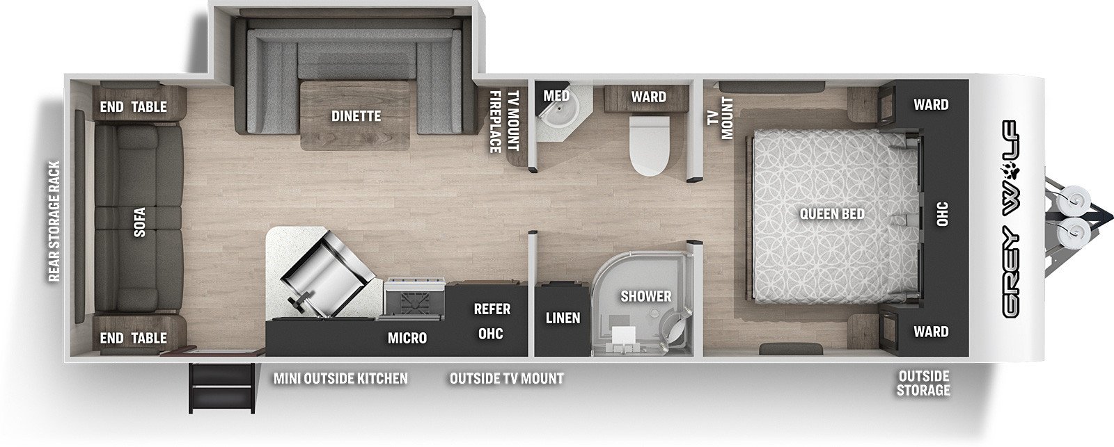 The RV for sale is a New 2022 Cherokee Grey Wolf Travel Trailer by Forest River RV that and has a slide.
