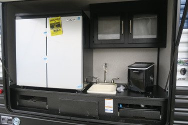 The RV for sale is a New 2021 Cherokee Grey Wolf Travel Trailer by Forest River RV that and has a slide.