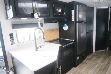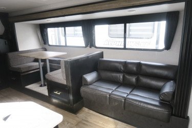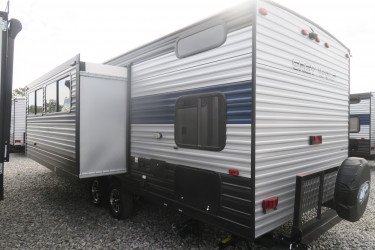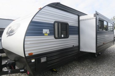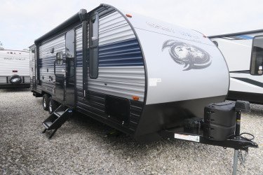 The RV for sale is a New 2022 Cherokee Grey Wolf Travel Trailer by Forest River RV that and has a slide.