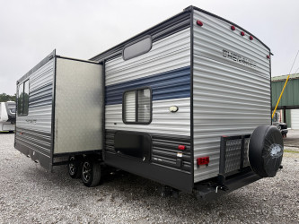 This Cherokee Grey Wolf Travel Trailer has a "274brb" floorplan, is 32ft 0in long, is in great condition and is available to you at your family RV dealer Holden in Holden, LA.