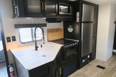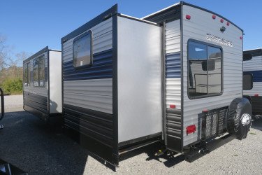 The RV for sale is a New 2022 Cherokee Standard Travel Trailer by Forest River RV that and has 2 spacious slides.