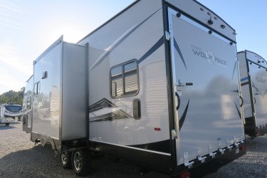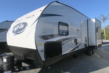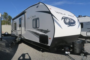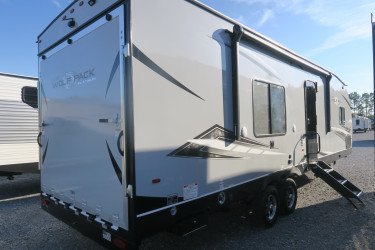 The RV for sale is a New 2022 Cherokee Wolf Pack Travel Trailer by Forest River RV that and has a slide.