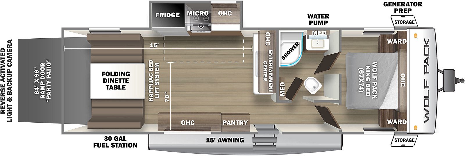 This Cherokee Wolf Pack Travel Trailer weighs 7848 (dry), is 33ft 7in long, has a "23pack" floorplan, is in great condition and is available to you at your family RV dealer Ponchatoula in Ponchatoula, LA.