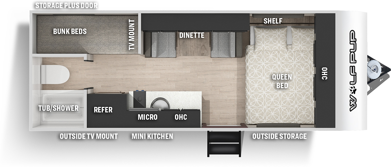 This Cherokee Wolf Pup Travel Trailer weighs 3078 (dry), has a "16bhs" floorplan, is in great condition is 21ft 5in long, and is available to you at your family RV dealer Ponchatoula in Ponchatoula, LA.