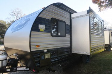 The RV for sale is a New 2022 Cherokee Wolf Pup Travel Trailer by Forest River RV that and has a slide.