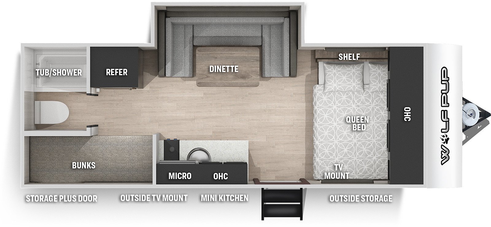 This Cherokee Wolf Pup Travel Trailer weighs 3860 (dry), is 23ft 4in long, has a "17jg" floorplan, is in great condition and is available to you at your family RV dealer Ponchatoula in Ponchatoula, LA.