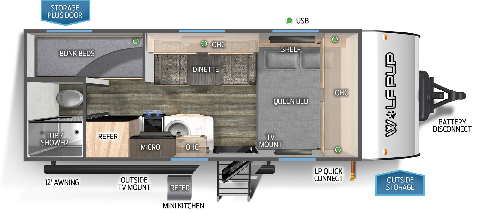 The RV for sale is a New 2024 Cherokee Wolf Pup Travel Trailer by Forest River RV that and much more.