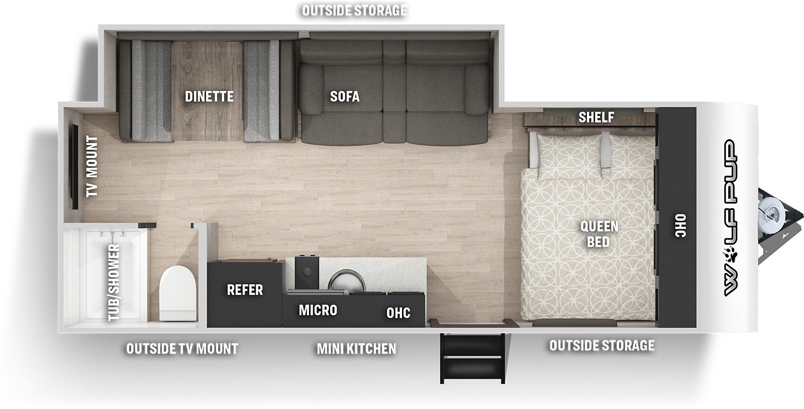 This Cherokee Wolf Pup Travel Trailer has a "18to" floorplan, weighs 3778 (dry), is 23ft 2in long, is in great condition and is available to you at your family RV dealer Ponchatoula in Ponchatoula, LA.